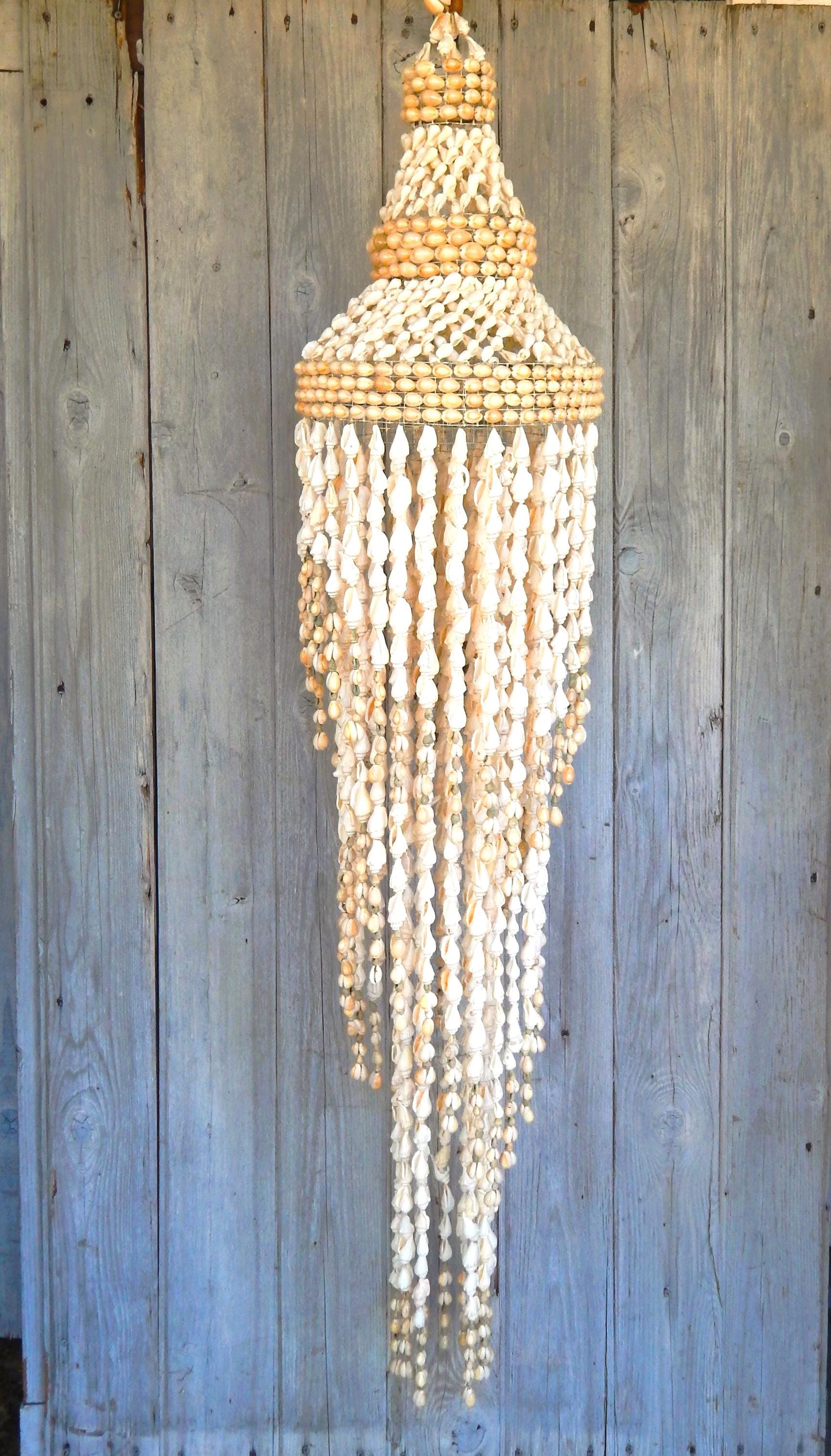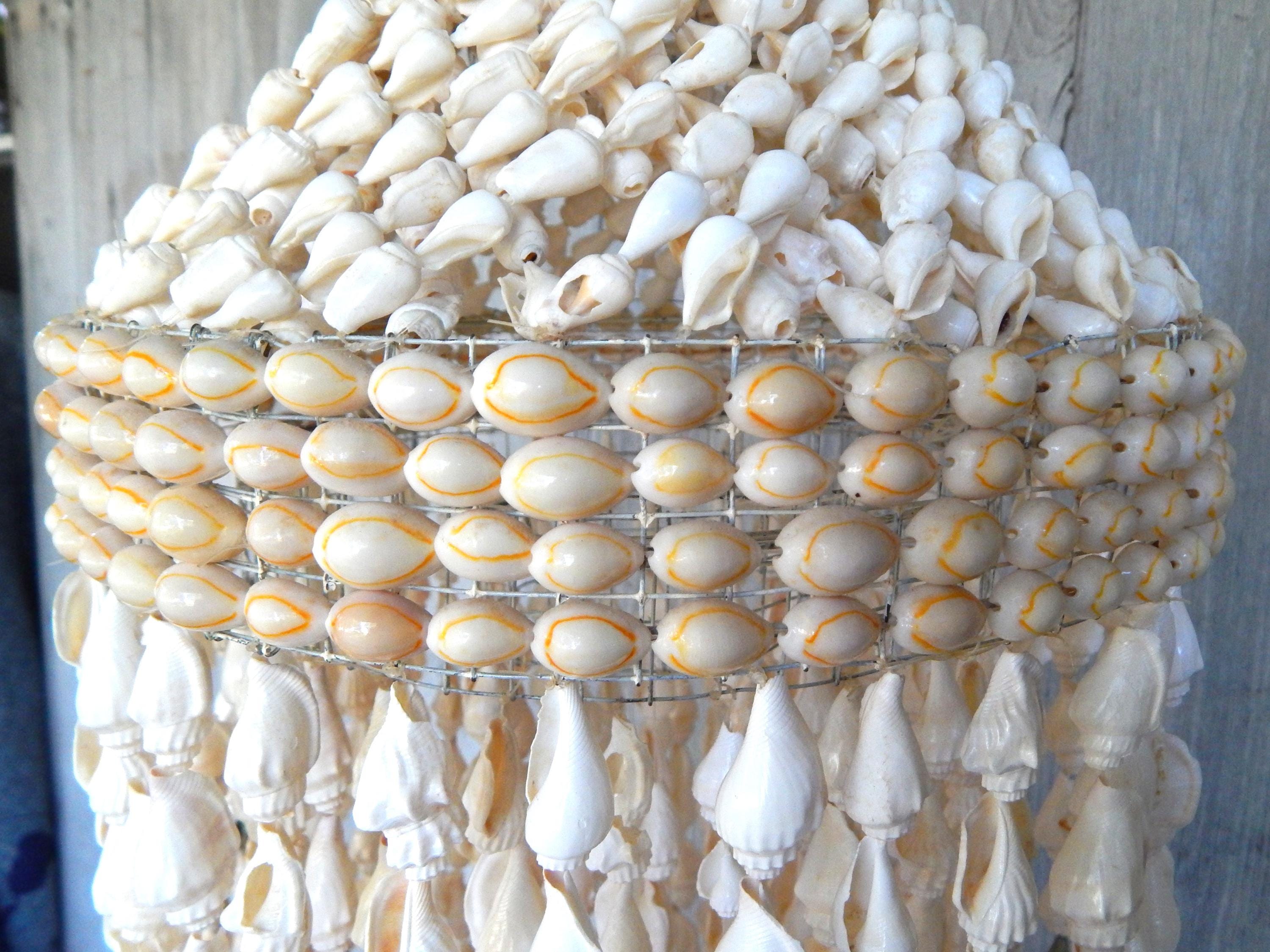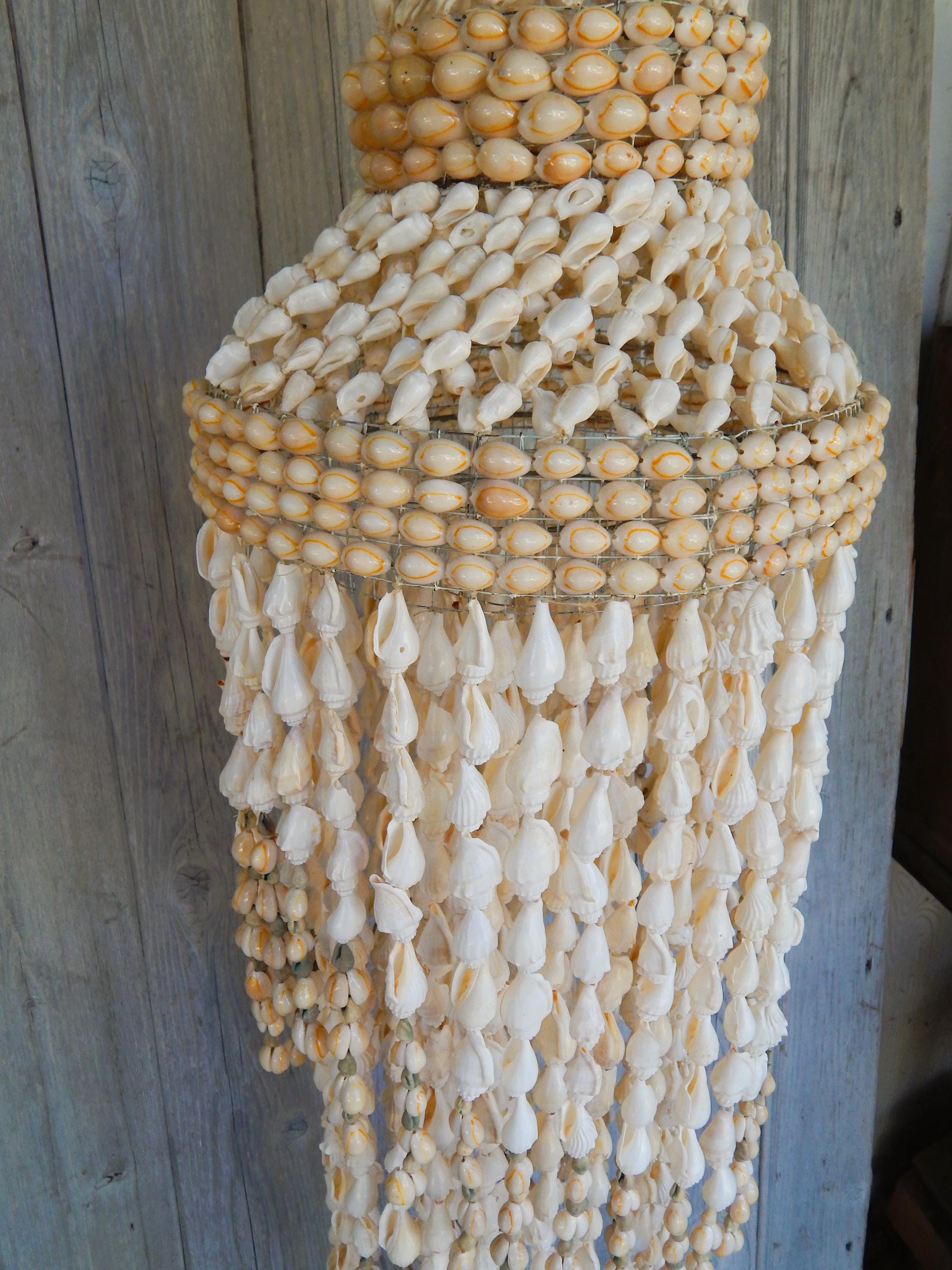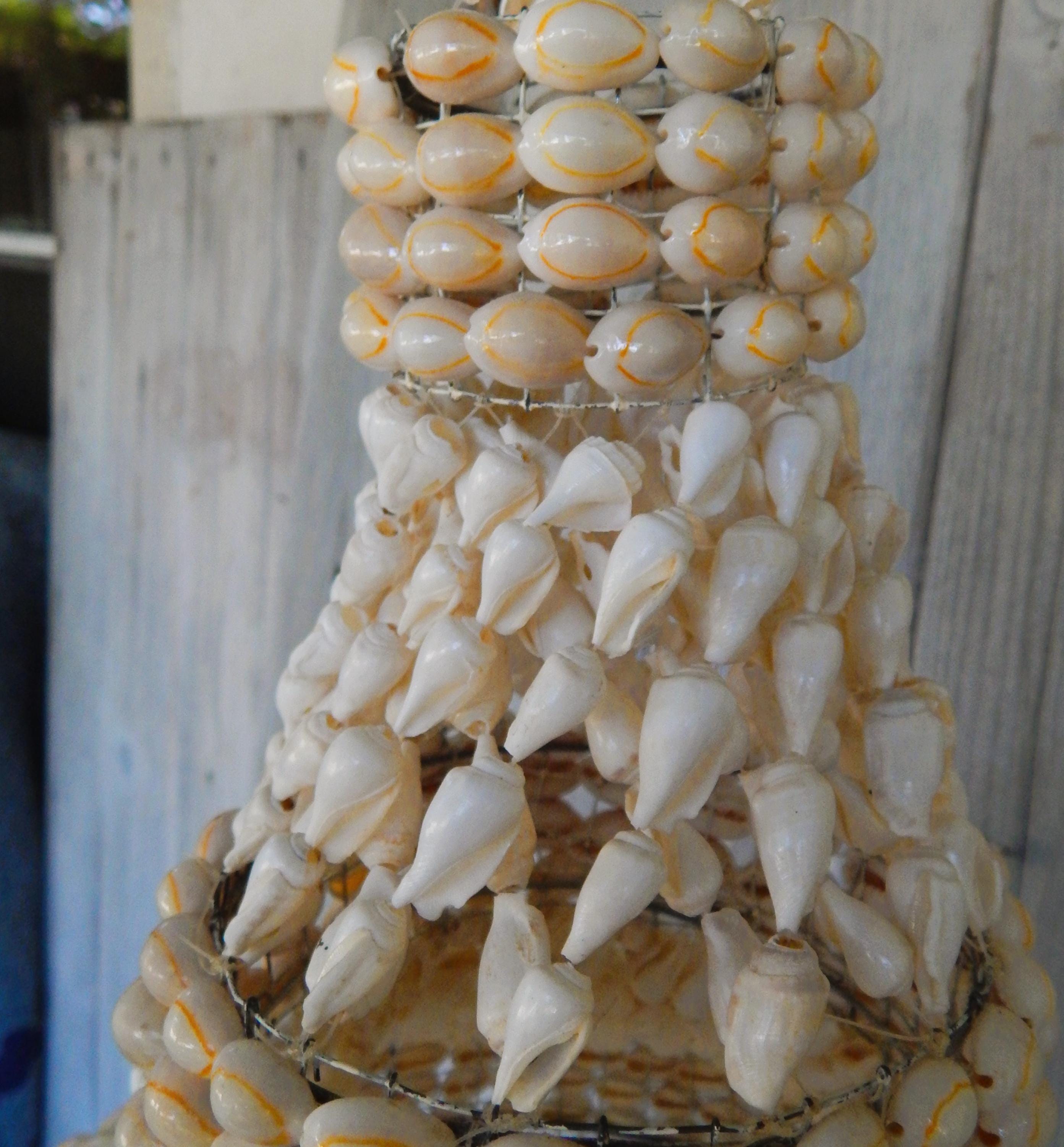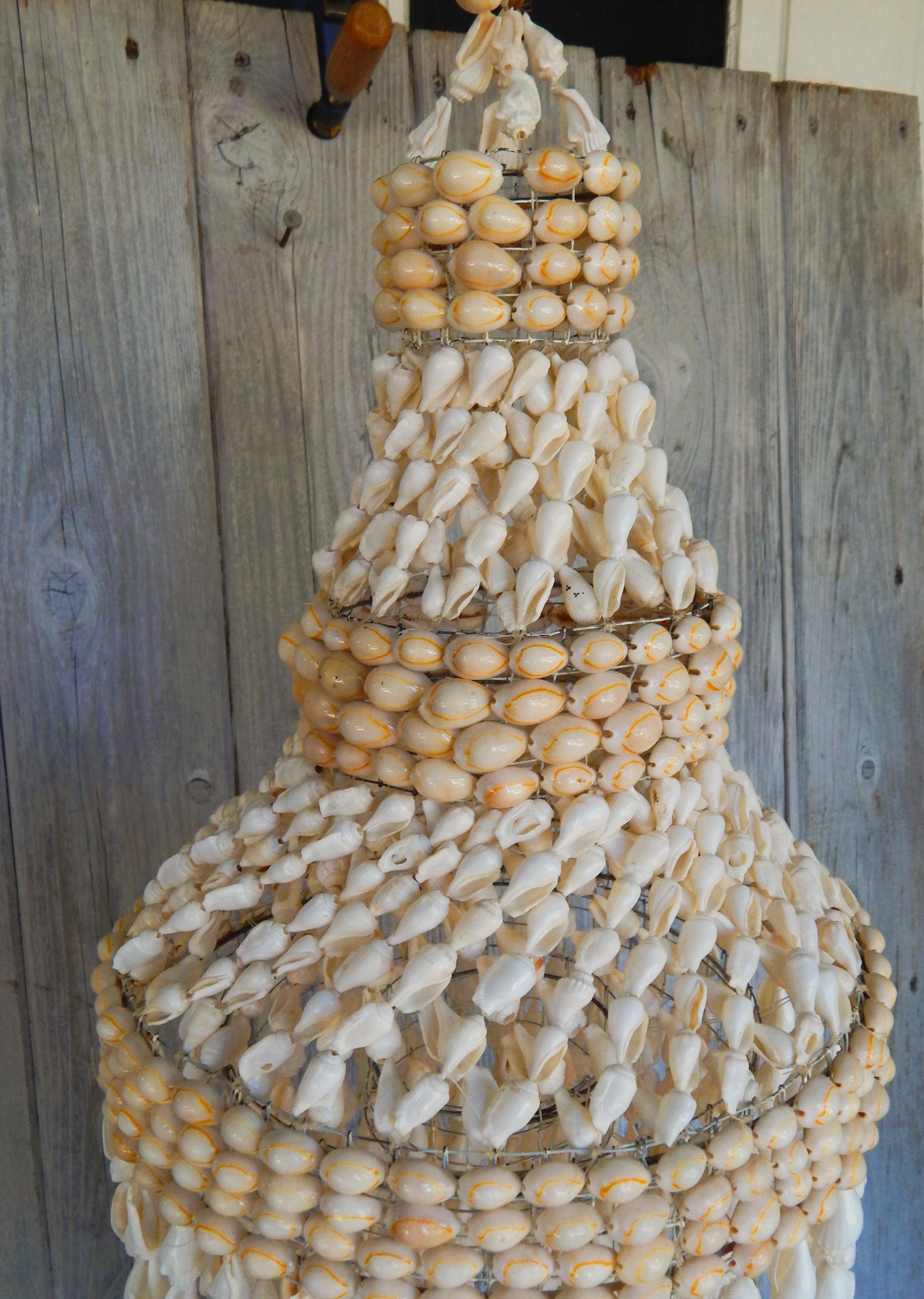 These were all the rage at tourist surf shops throughout the 60's and 70's. We've seen people festoon them with LED fairy lights and the effect is great. This one is just shy of 5 feet high and made from hundreds and hundreds of shells. Excellent condition. Measurements are 56" long x 11" in diameter.
