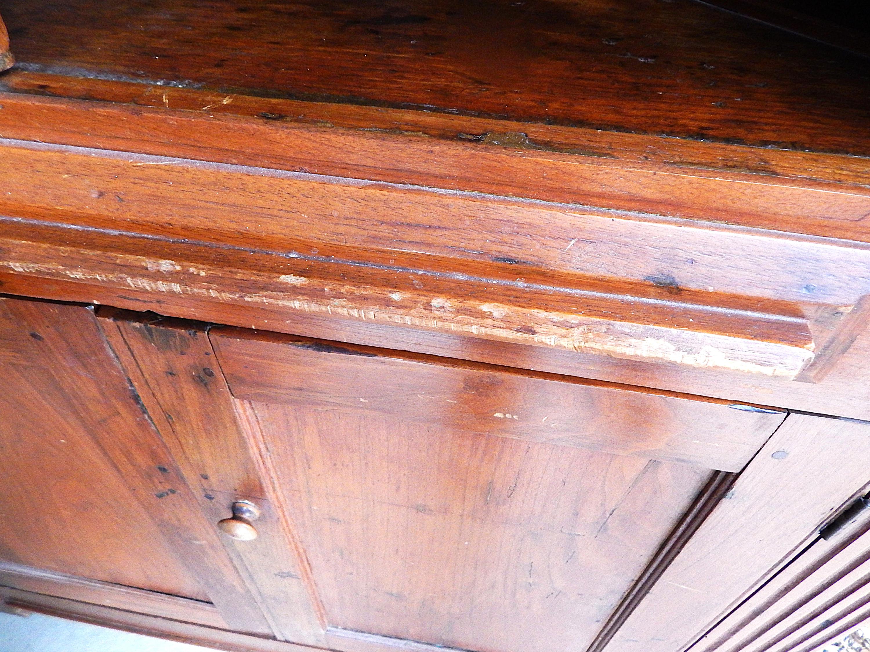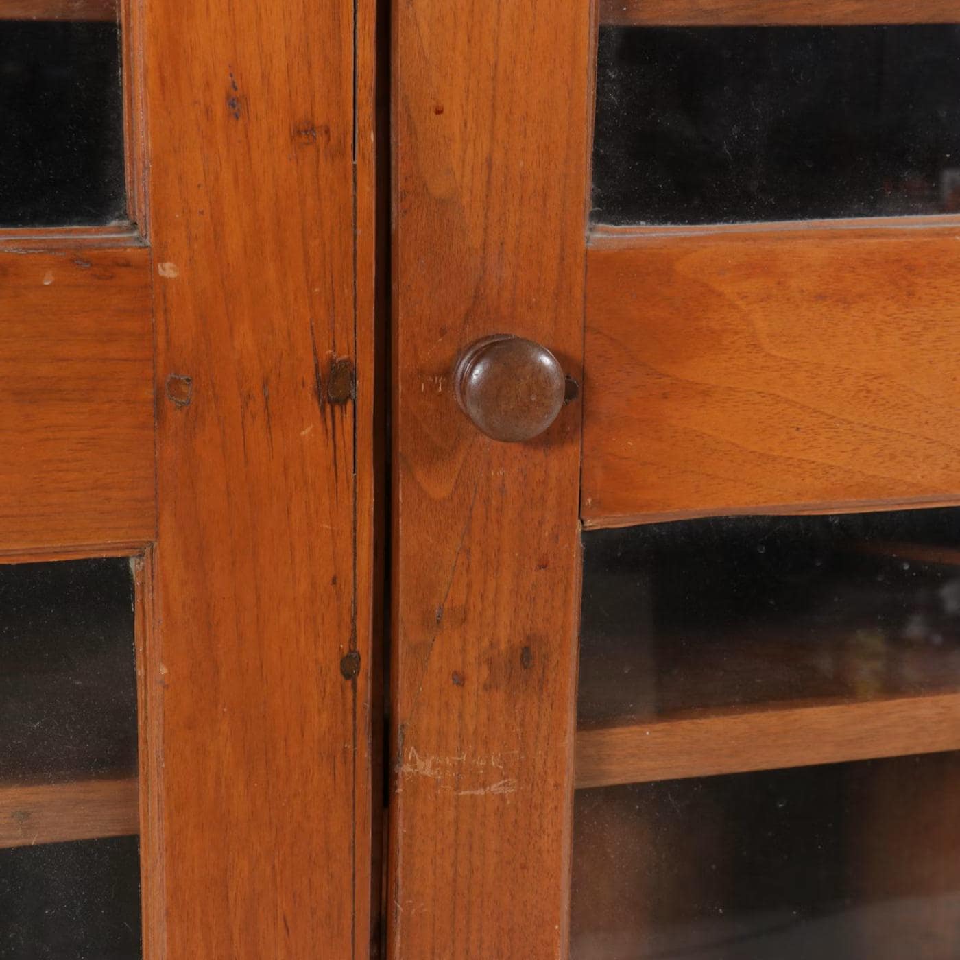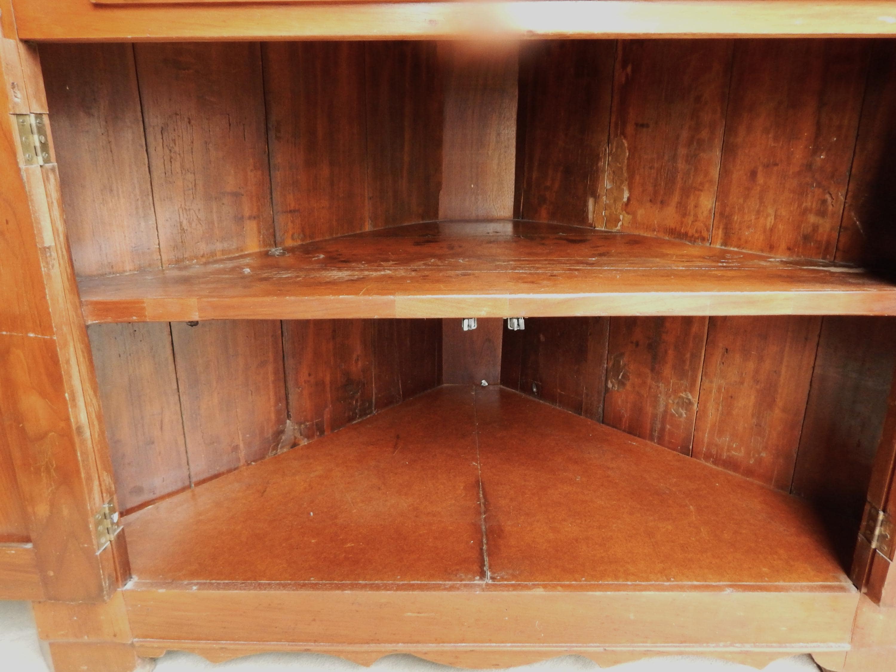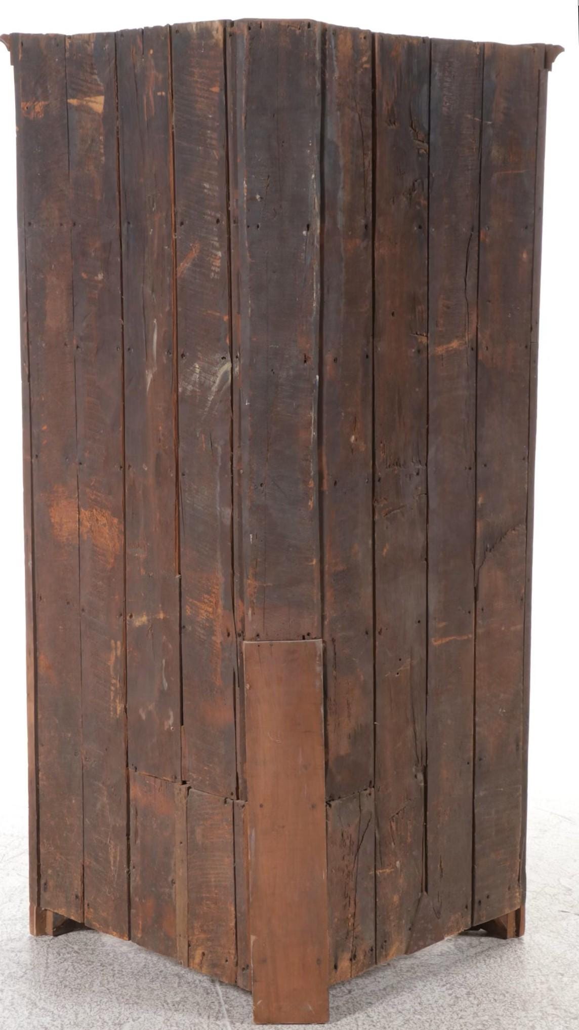Late 19c. solid walnut corner cabinet. Overall excellent condition free of cracks or splits. Finish in very good condition showing some shelf wear, etc. Doors operate and latch as they should. Simple elegant lines and top rate construction. Measures 51.0" W x 84.0" H x 26.0" D.