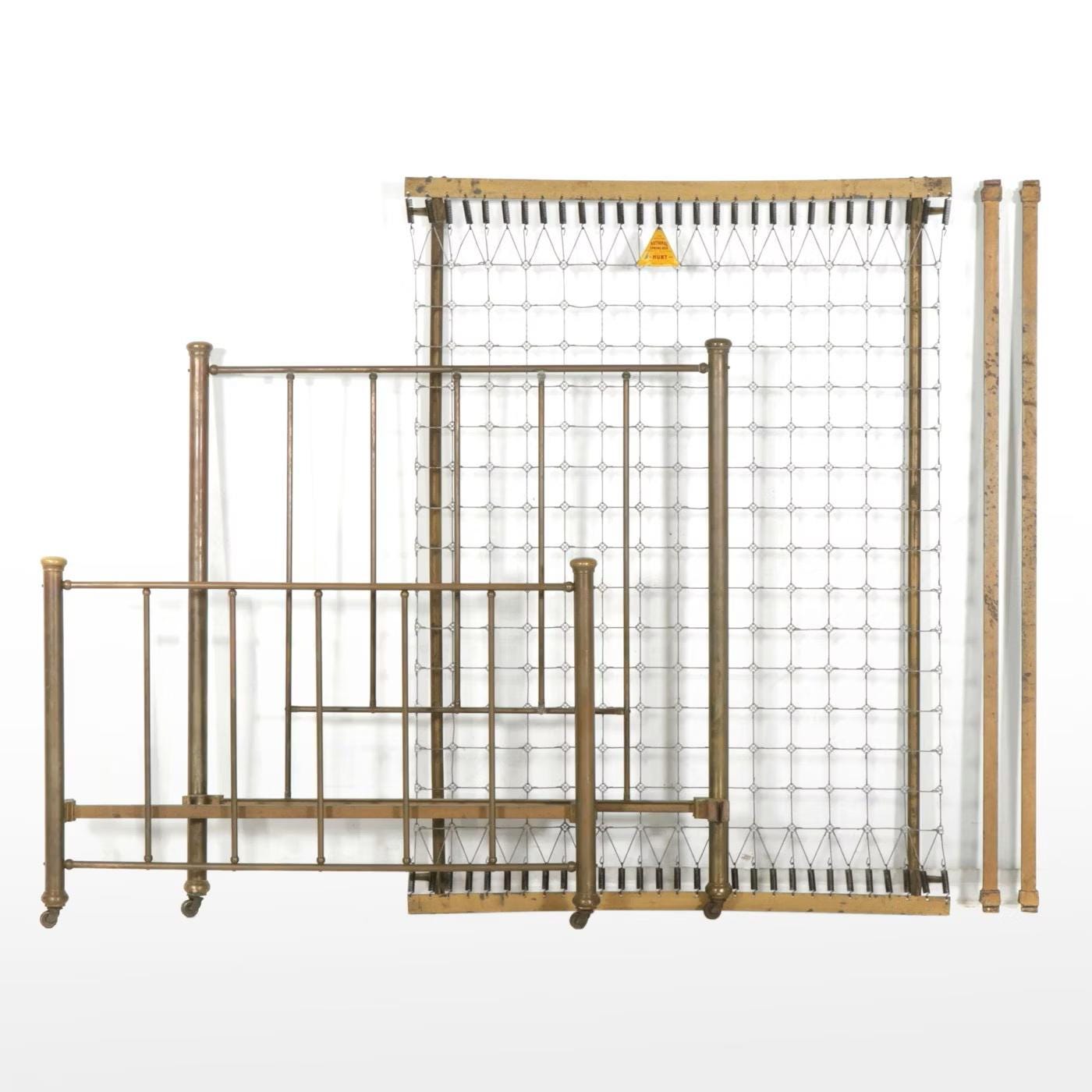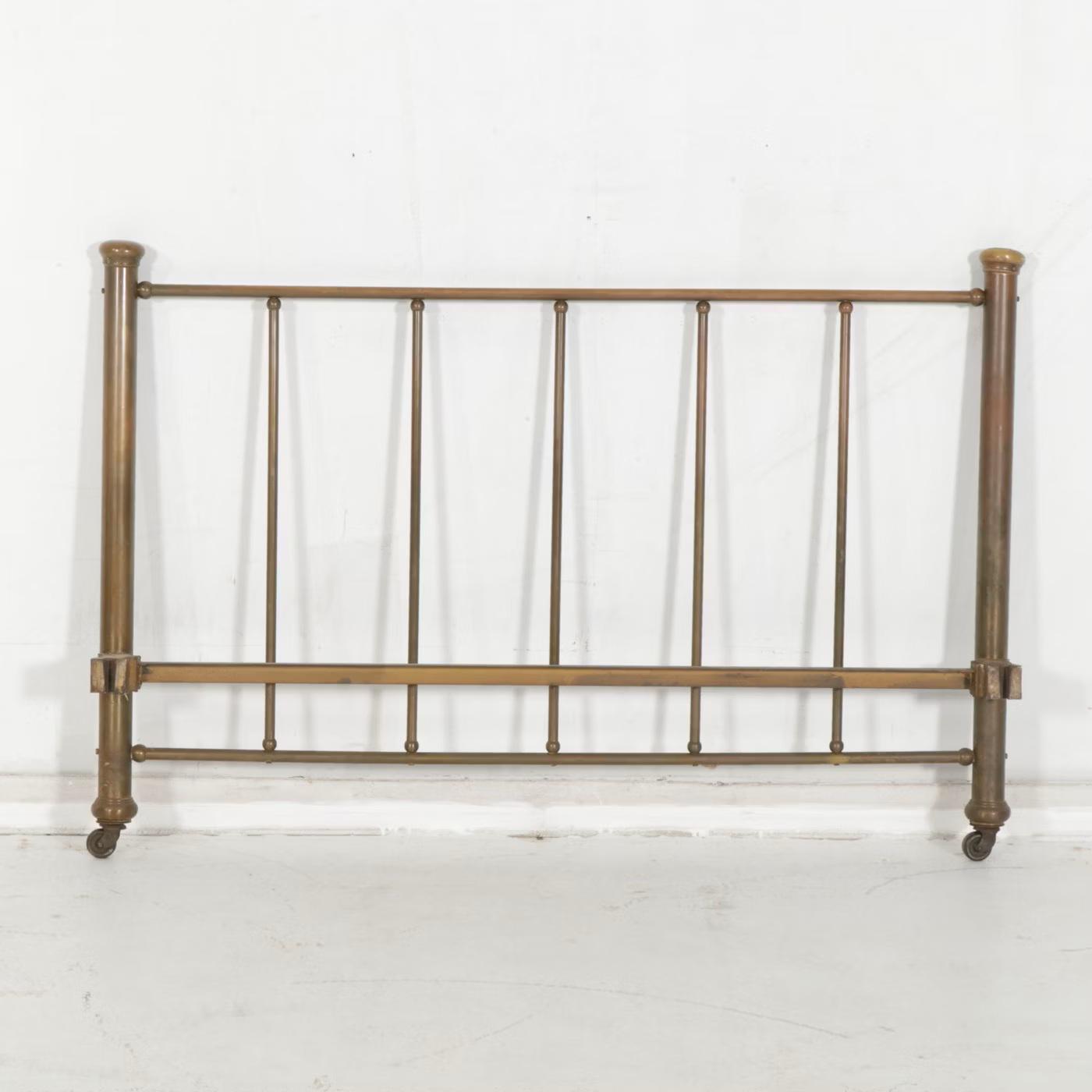 Ready to go. All original pieces/parts. Solid brass head and footboard. Not that shiny new fake stuff. Full size. Finish wear to rails, etc. as shown. Great patina.