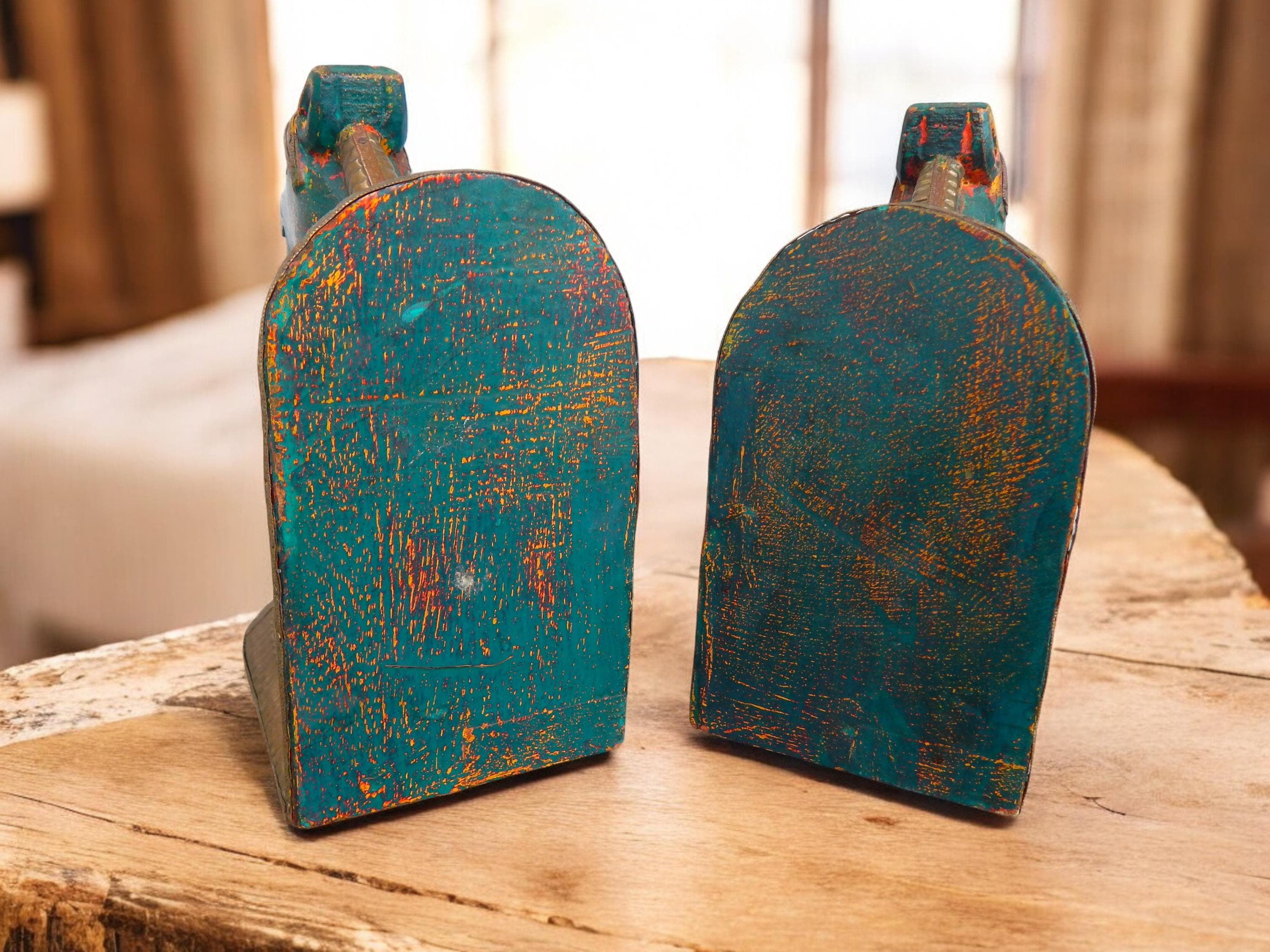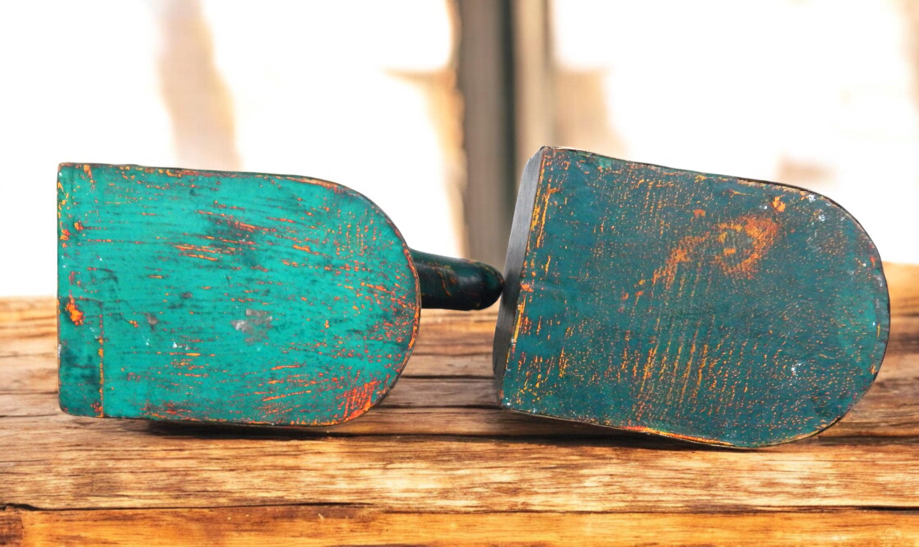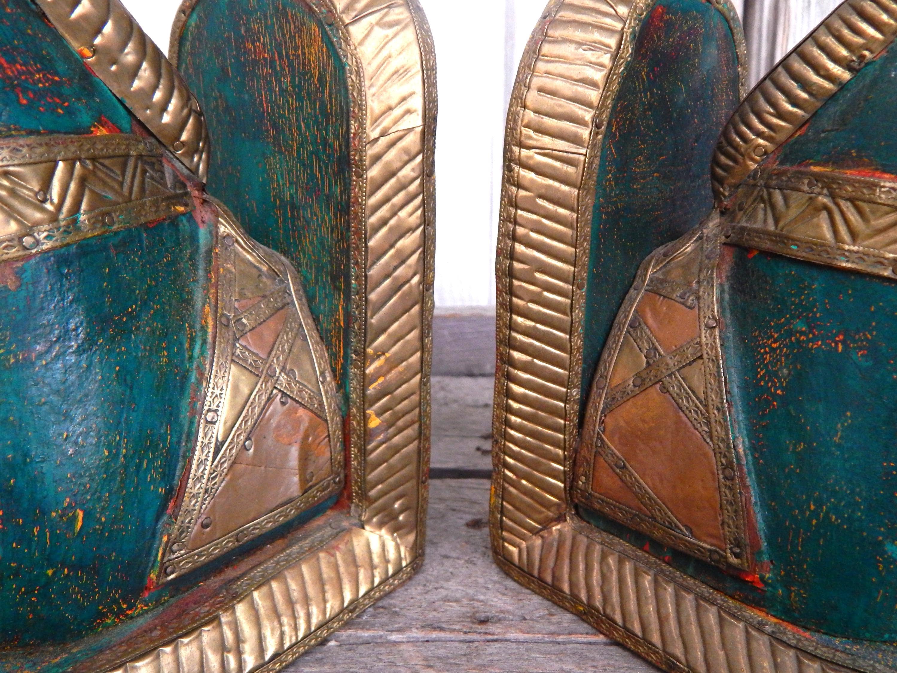 Remarkable craftsmanship. Completely hand fashioned and painted. Ornate brass trim and delicately done tin eyes. Some paint rub as shown. No splits or cracks. Each is 6.5" long x 6.5" high x 3.5" wide.