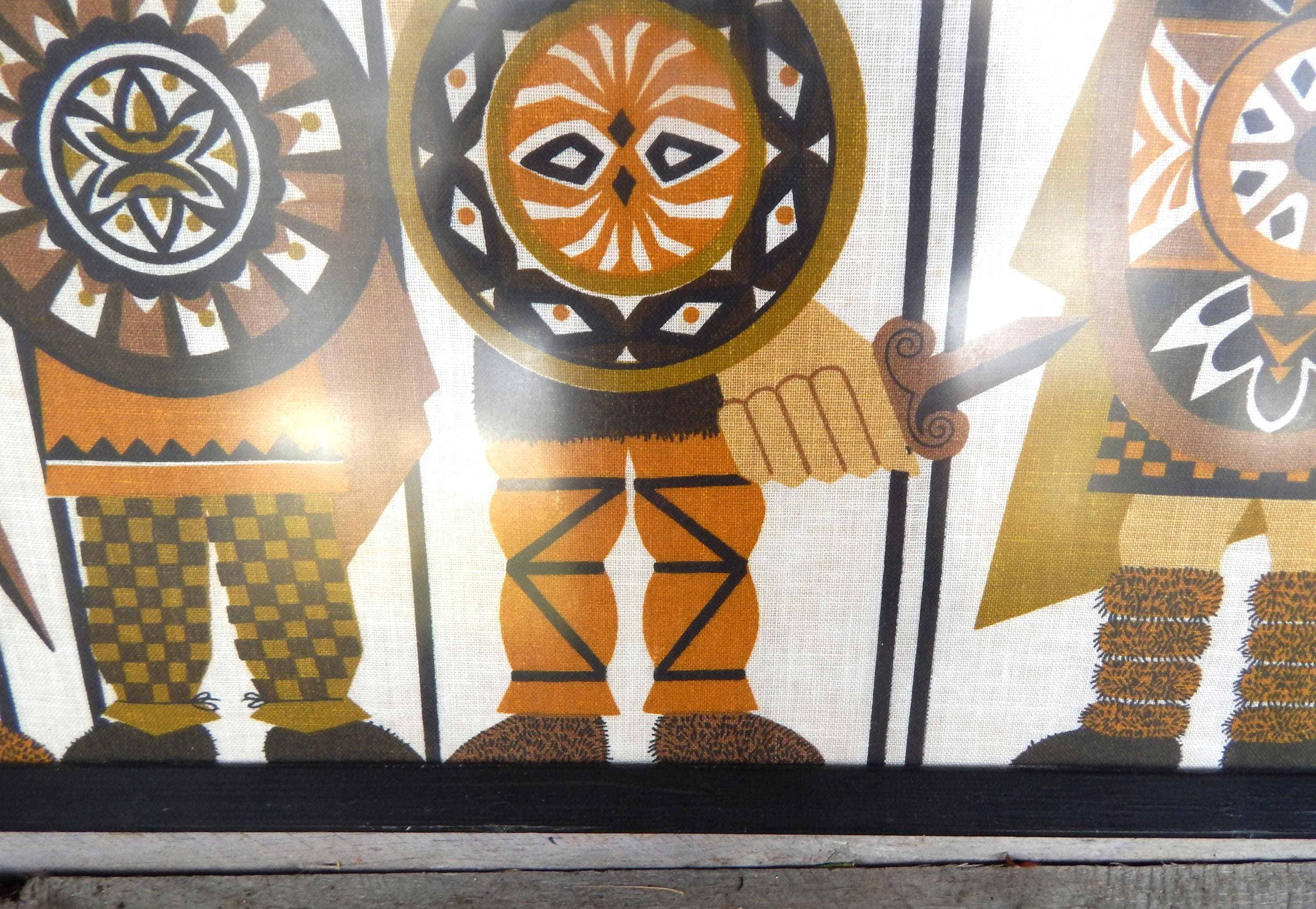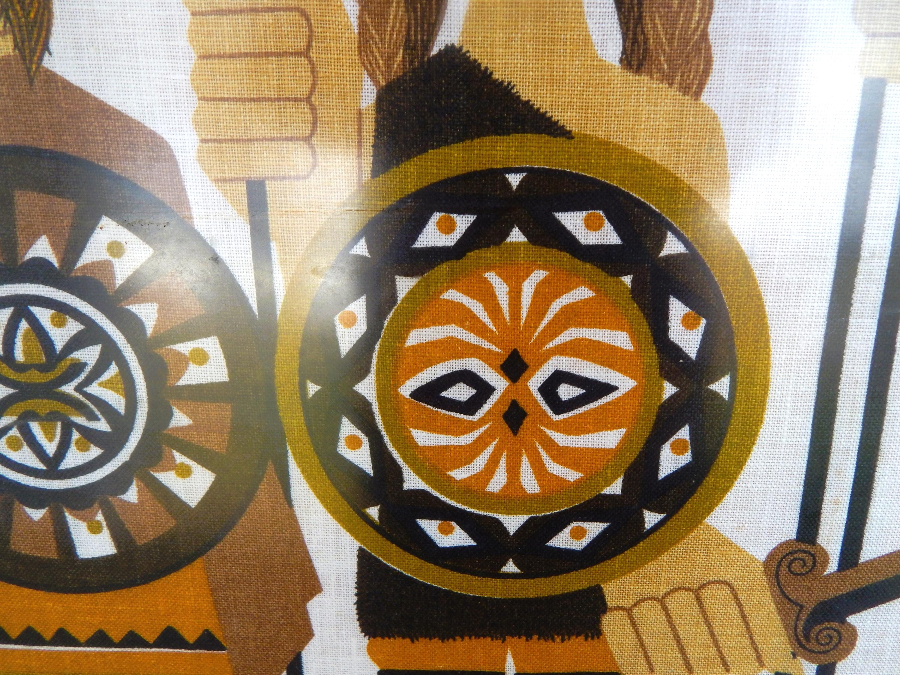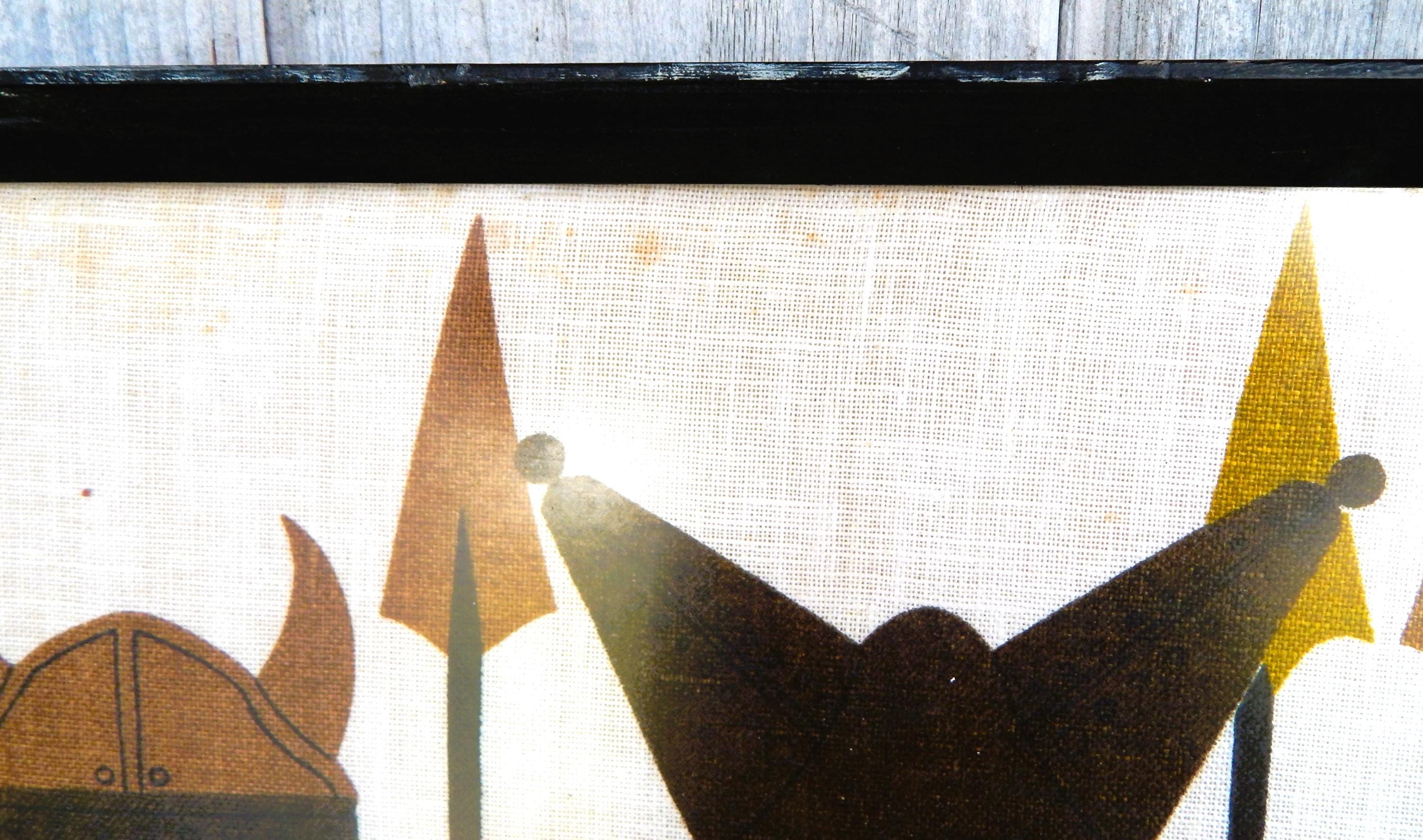 Serious 1970's styling to the graphics of 'Early Britons' (Vikings) silk screened onto Irish linen. Overall good condition with some scattered spotting as shown. Measures 31 x 20. Free local pick up. Nationwide shipping.