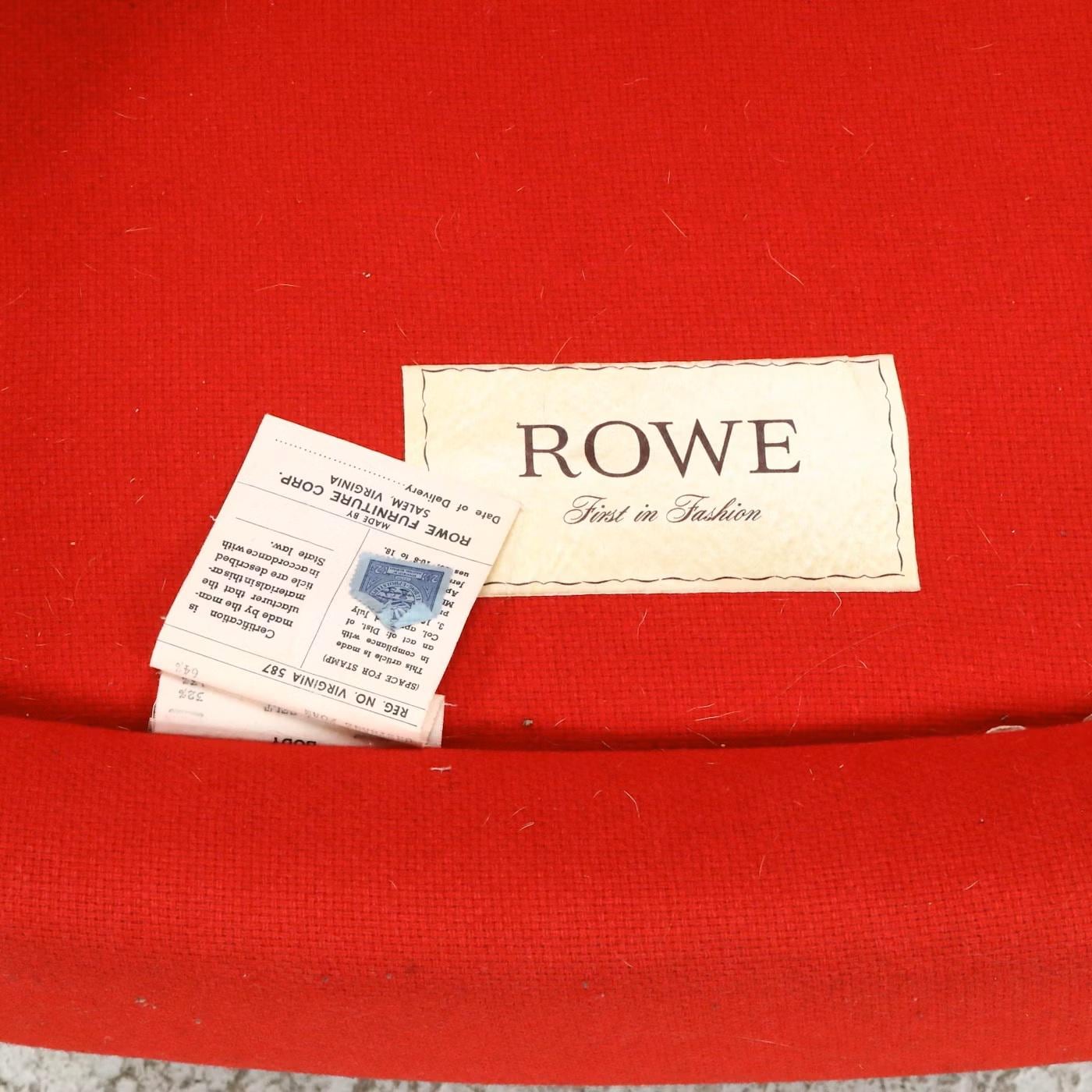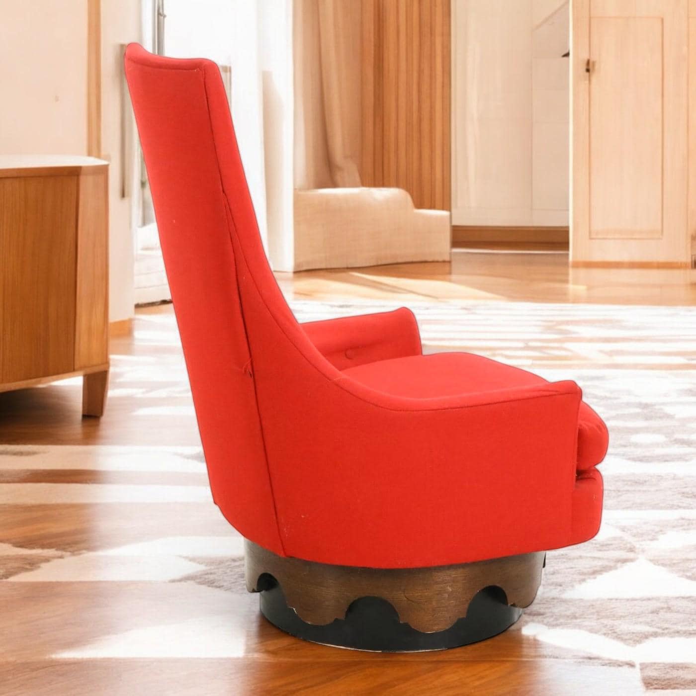 Designed by Adrian Pearsall for Rowe Furniture Strictly Spanish collection. Original label is present. . Very good overall condition showing minor finish loss to base and expected light wear and spotting to the original wool weave upholstery. We have left a LOT of room in the price for recovering should you wish. Swivel mechanism works smoothly Measures 29.5" W x 44.0" H x 30.0" D