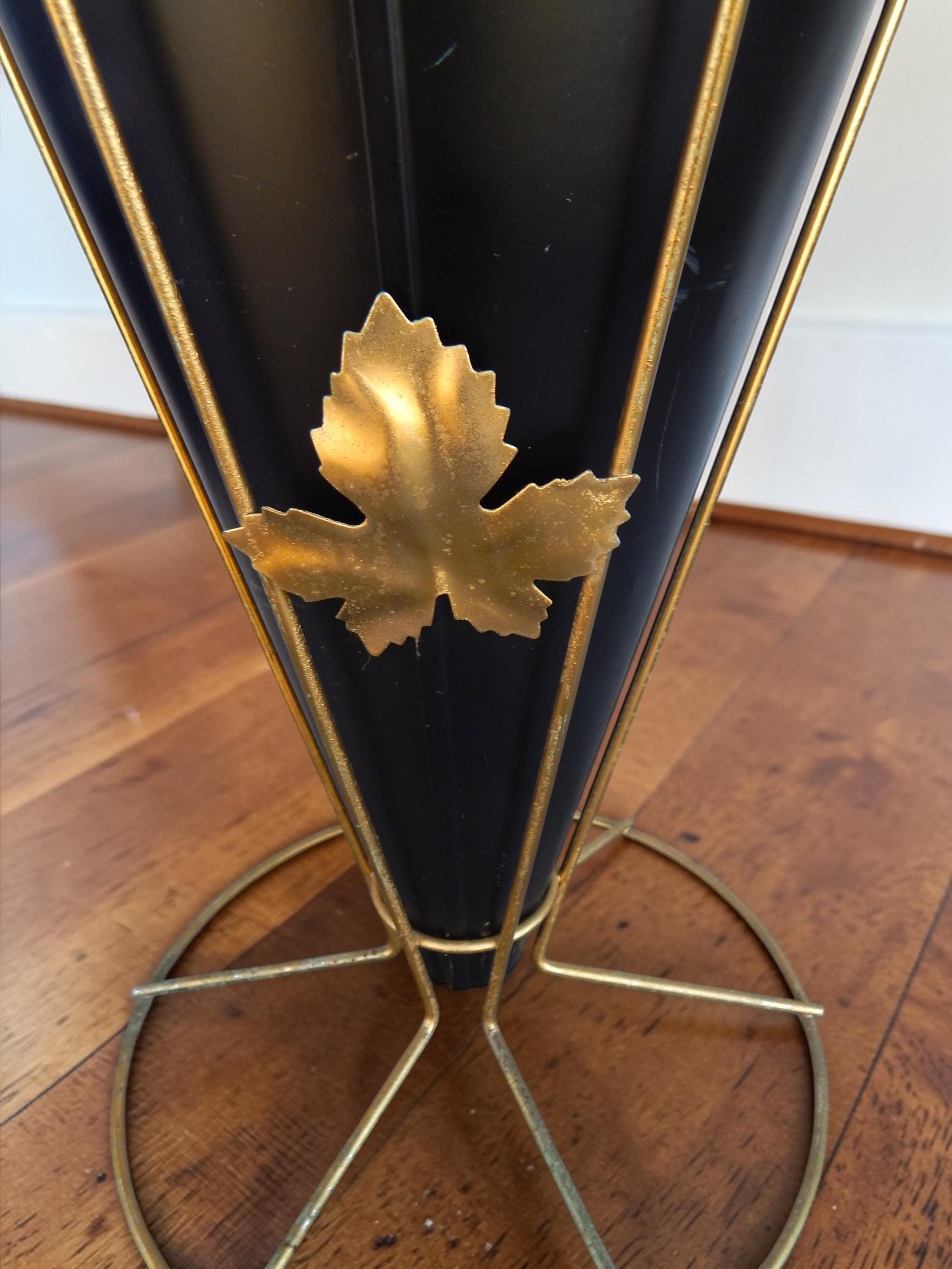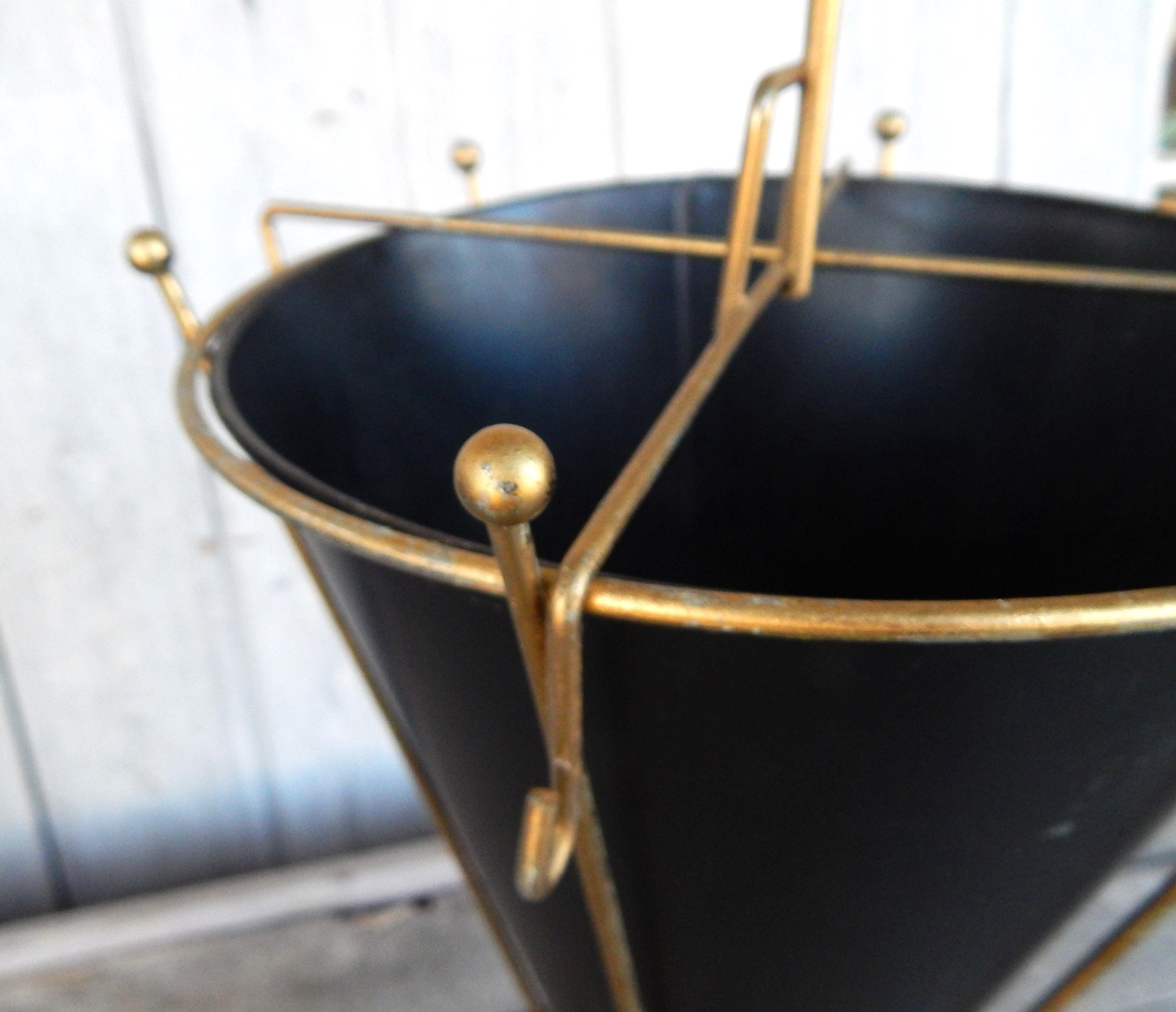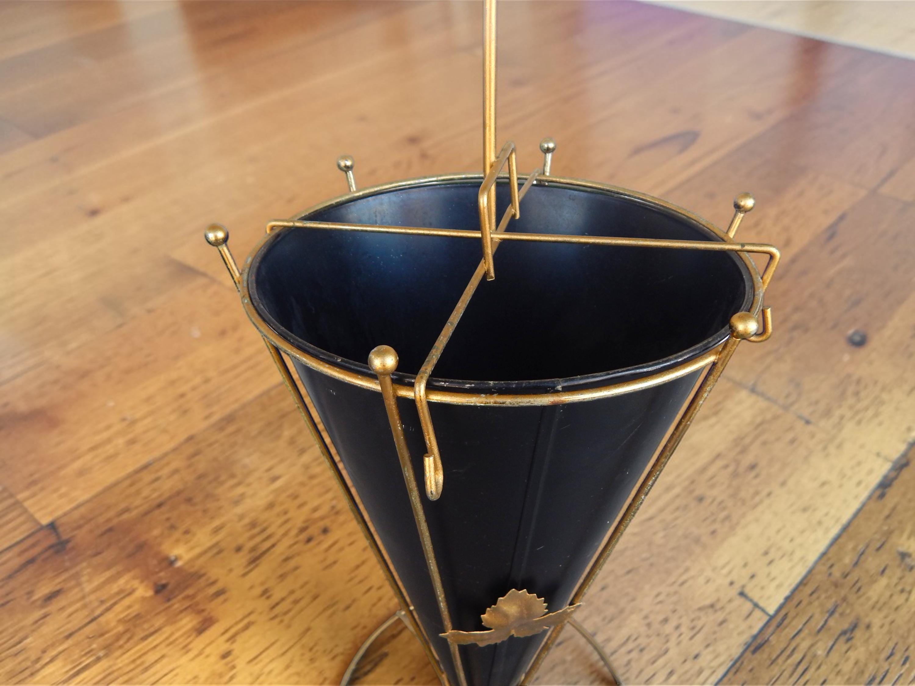 We see these occasionally but have never acquired one as so often the removable steel funnel is rusted. But not this one. All around fantastic condition with the bare minimum of finish rub and aging. Stands 28" high to the top of the handle. 10" in diameter.