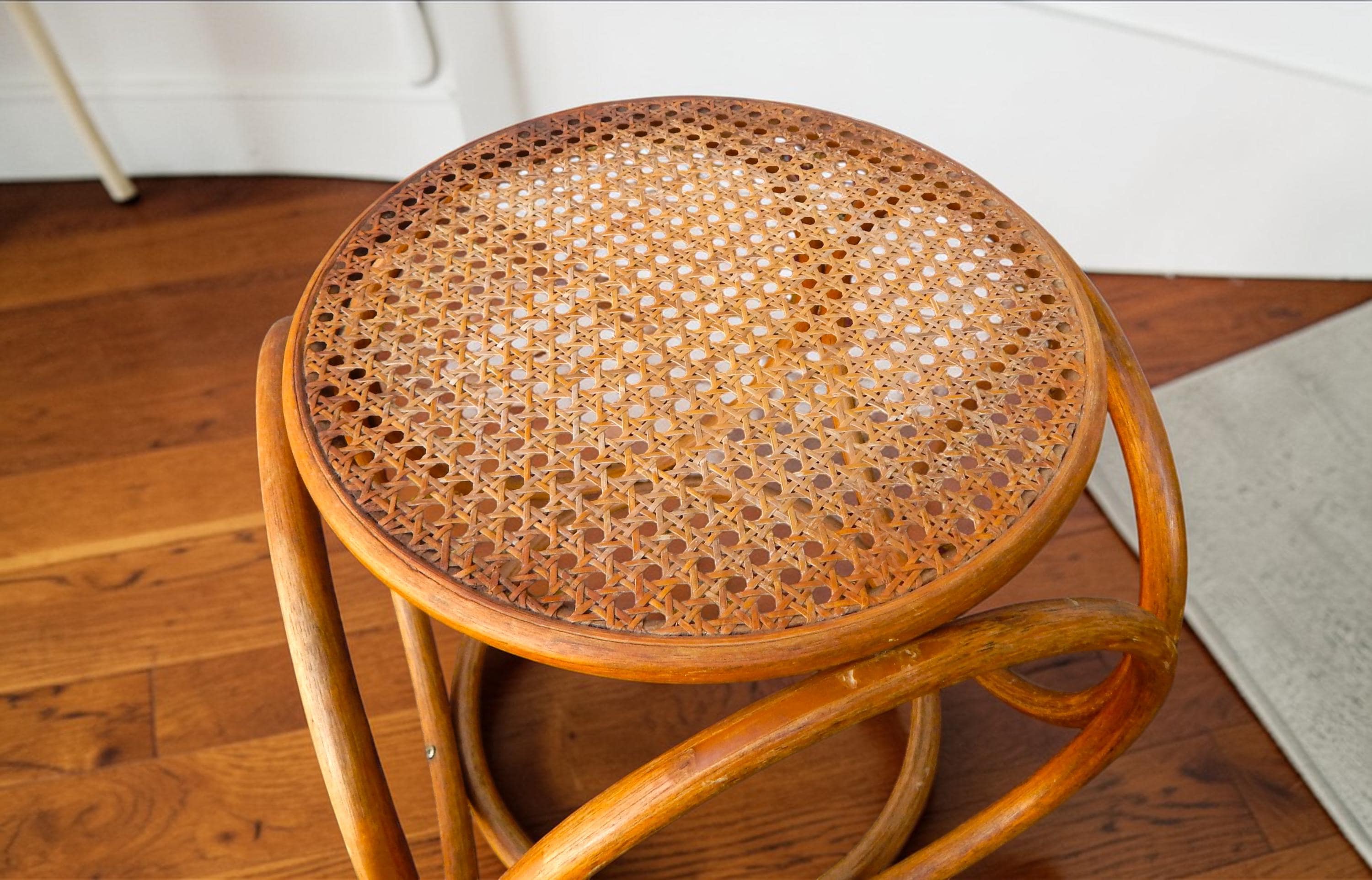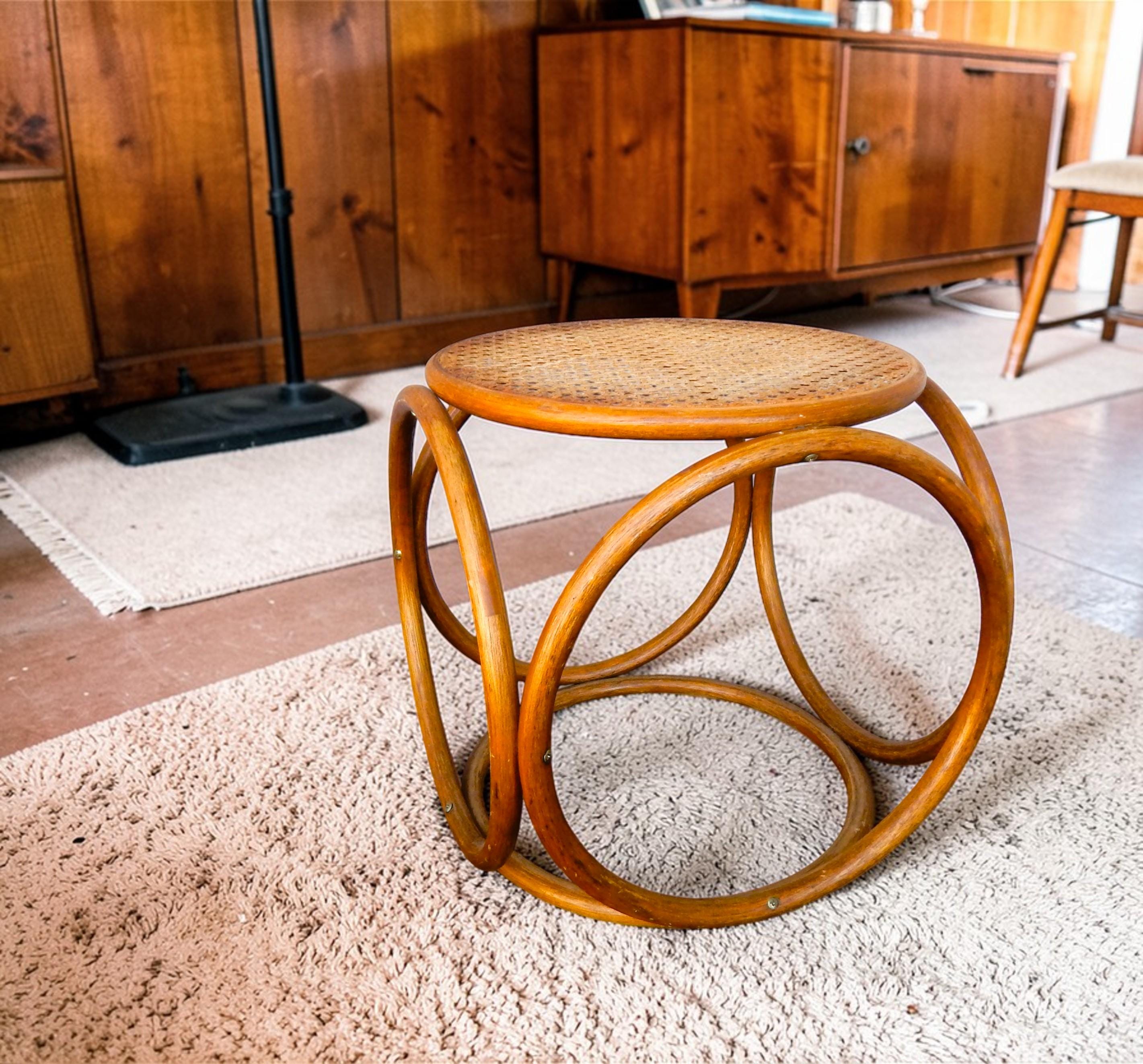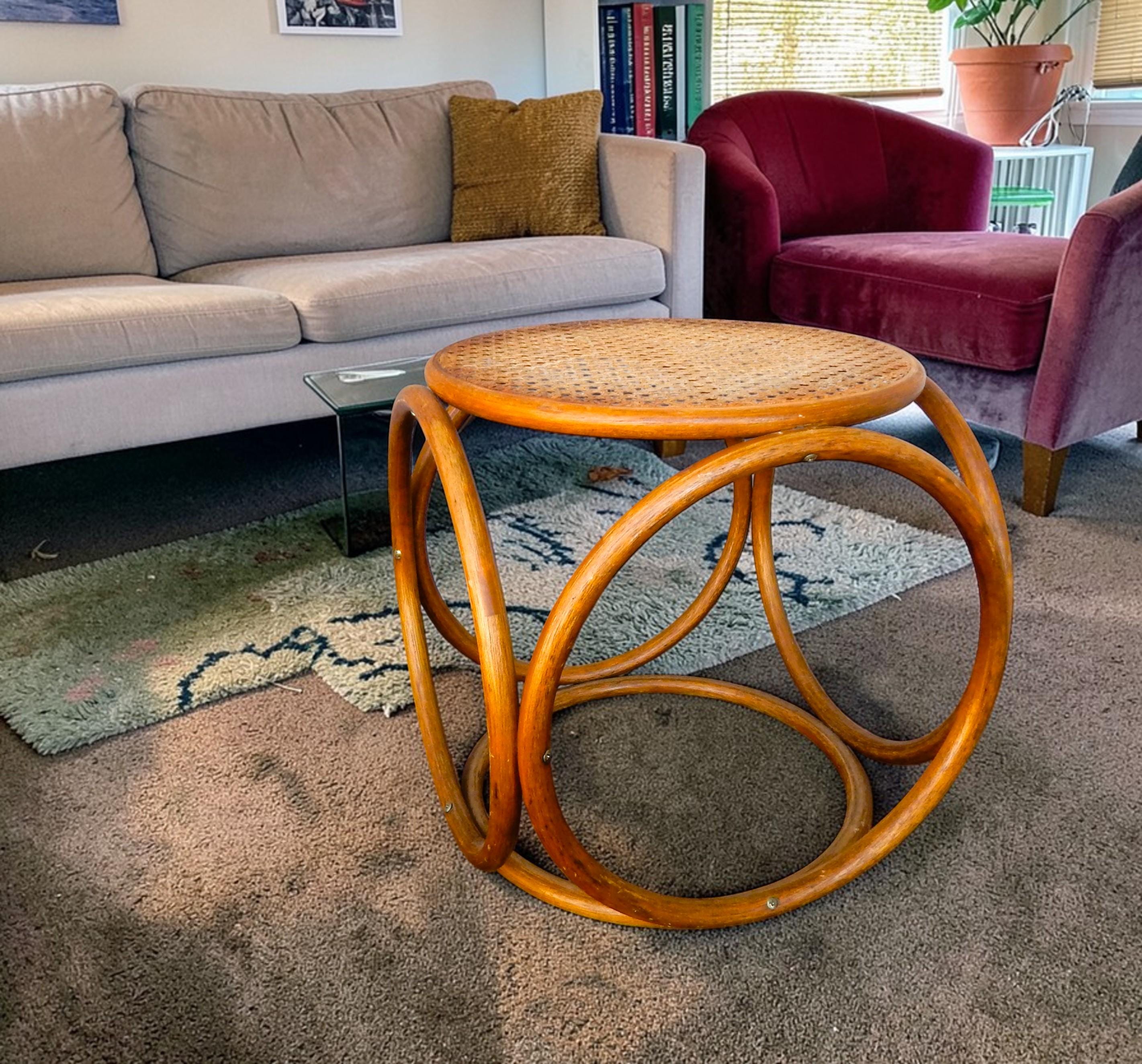 A great addition to your vintage space. Cane and bentwood Thonet style table / stand. Sized for a variety of uses. Cane in excellent condition. Framing in excellent condition showing only minor finish wear. No splits, cracks, etc. Measures 15 x 15 x 15".